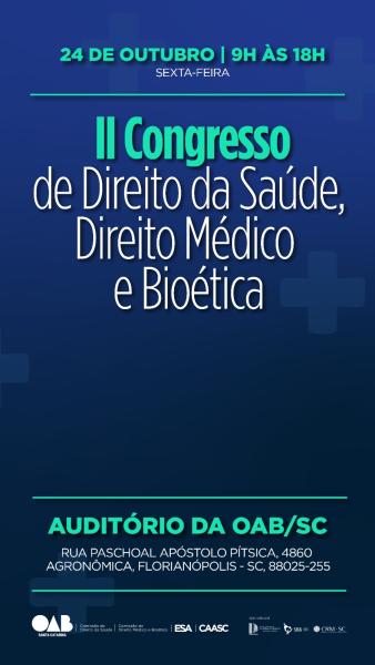 II Congresso de Direito da Saúde, Direito Médico e Bioética - OAB/SC